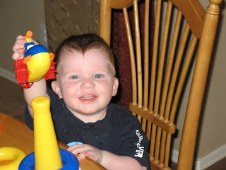We are starting to practice praying with Carter. He is awesome about always folding his arms. He will even squint his eyes for parts of the prayers. Now we will say a phrase and he will repeat the last word of it. So, if we say, “Please bless Uncle Bradley” he would just say, “Badley”. Sometimes he will mumble for about as long as the phrase is and then say the last word. Anyways, it’s really cute.